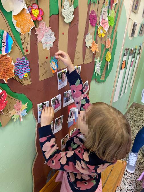 Abbiamo, dunque, chiesto alle famiglie di scrivere su una sagoma di frutto, foglia o fiore l’origine del nome dato ai loro bambini, il perché sia stato scelto proprio quello, in mezzo a tanti.