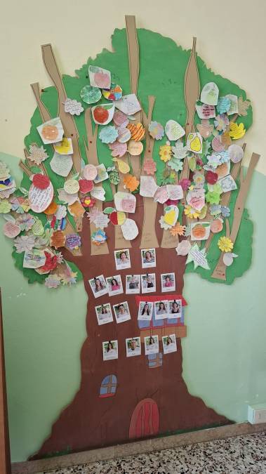 Al termine della mattina abbiamo ammirato il nostro albero, posto all’ingresso della scuola, riempito di tutti i nomi dei bambini con la loro piccola storia.